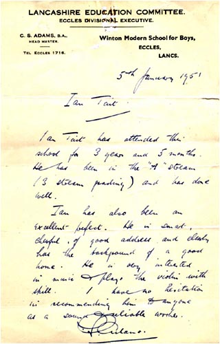 Ivor Lancashire emailed me this memory from our days with Mr. Grimshaw, 50's ..... Reference your search for Teacher sayings remember Mr Grimshaw ( Engineering Drawing), classroom between the Girls and Boys playground, I think there are a few of us who have suffered the Drawing Board Clip bouncing of our heads for looking at the Girls playing netball instead of Drawing. My memory of Mr Grimshaw was of an extremely smartly dressed Man, ex Glider Pilot who, if he was confronted by a pupil who did not take any notice , used to say "BOY ARE YOU DEAF, DAFT OR INDIFFERENT" Yea! Ivor, I had forgotten about that quote, but your right. It was used quite a lot eh? Ernie |
