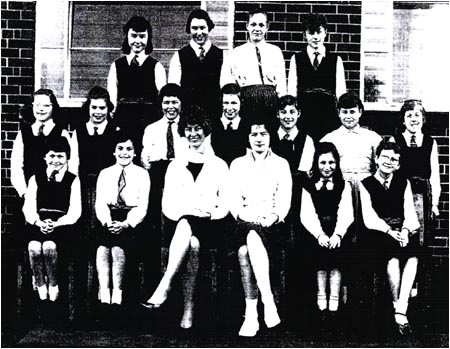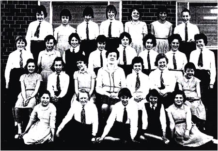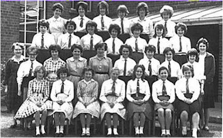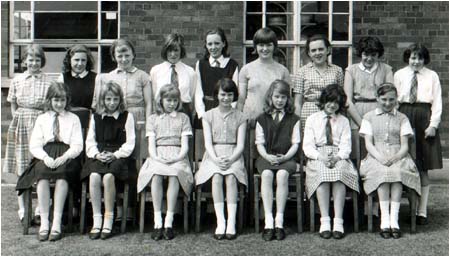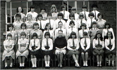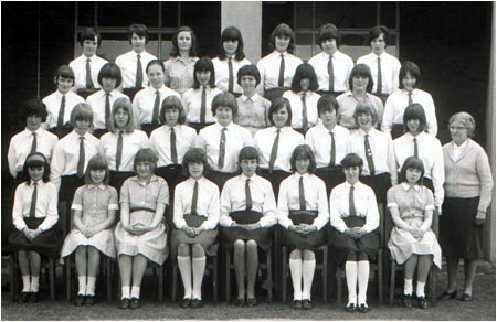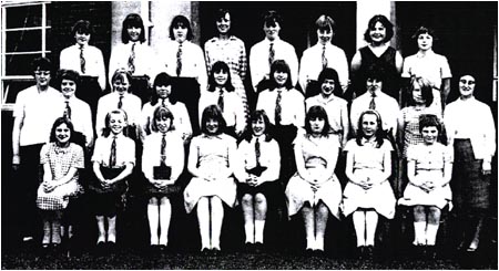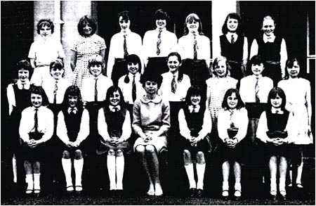 Back Row: unknown, unknown, K. Cooper, Diane. ?, C. Ledsham, M. Massey, A. Cooper, L. Marigold 4th Row: I. Hadfield, C. Holmes, D. Barron, unknown, N. Johnson, B. Lee, L. Glynn, P. Cliff J. Hodder. 3rd Row: M. Lomax, P. Quinn, B. Lofthouse, S. Shazzell, E.Mann, unknown, J. Mainwaring, unknown R.Monks, B.Whittaker. 2nd Row: A. Brazendale, unknown, P. Nightingdale, Miss Godley, unknown, A. Byrom, E.Stott Front Row: A. Cropper, S. Shaw, E. Twigg, S. Wilkinson, Brenda ? |