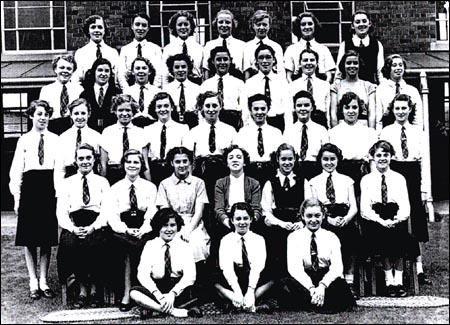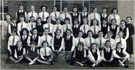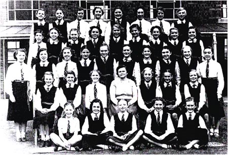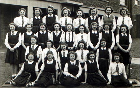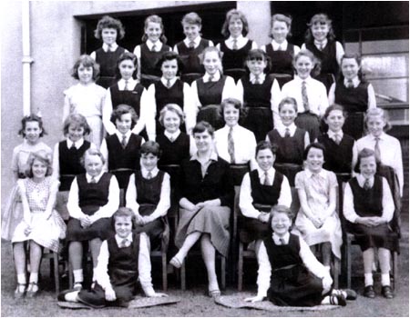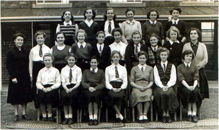 | Standing Girls Row: unknown, unknown, Margaret Bunker (nee Sheridan), M. Stark, unknown, unknown, unknown, unknown, unknown, unknown, unknown. Desk Pairs, far Row from front: [ unknown, unknown],[ unknown, Betty Malleliue ],[ unknown, unknown],[ unknown, unknown], [ unknown, unknown],[ unknown, unknown] Desk Pairs, near Row from front: [ unknown, unknown],[ unknown, unknown],[ unknown, unknown],[ unknown, unknown], [ unknown, unknown] Other girls that are here are: ( can you locate em!) Norma Yearsley, Jean Goldsmith, and Ann Livesey. Gillian? Elsie Tewson, Beryl Ripley, Pat Warrender Mavis Leadbetter Barbara Pearson |