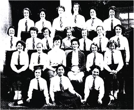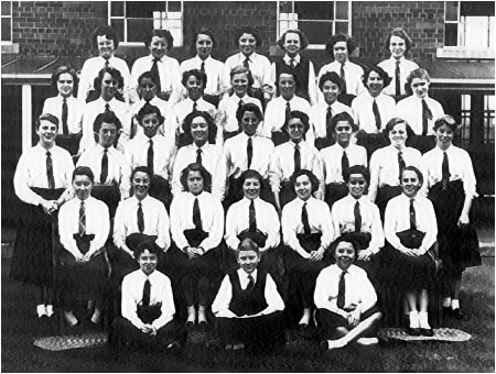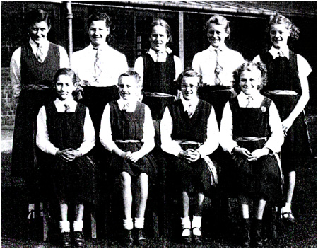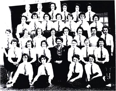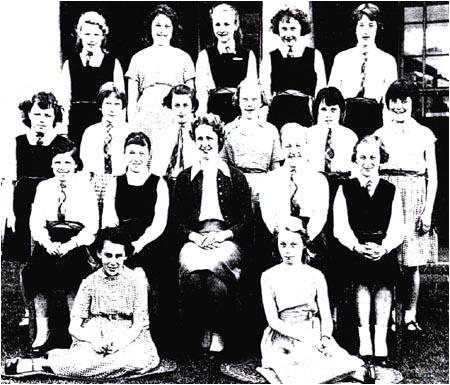 | Top Row: J. Smith, unknown, M. Stark, unknown, unknown, unknown Middle Row: Miss Ellison, unknown, unknown, M. Parkins, unknown Front Row: June Mainwaring , Connie McCulloch |
