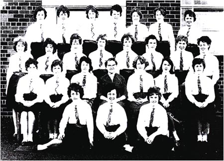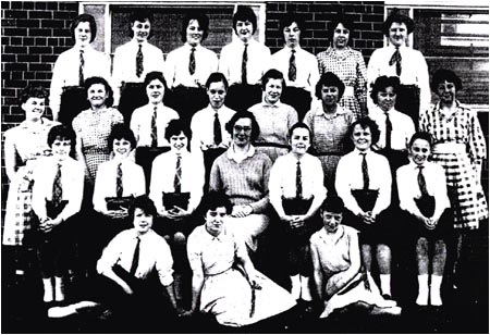 | Back Row: unknown, unknown, unknown, unknown, D. Mills, unknown, J. Coniff 4th Row: unknown, V. Alcock, unknown, unknown, unknown, M. Smith, unknown, B. Allison unknown 3rd Row: unknown, J. Dale, J. Srallon, unknown, D. Clark, unknown, unknown, B. Allison M. Lee 2nd Row: unknown, unknown, unknown, unknown, unknown, unknown, D. Willoughby Front Row: D. Bradburn, J. Eckersley, Sandra.? |