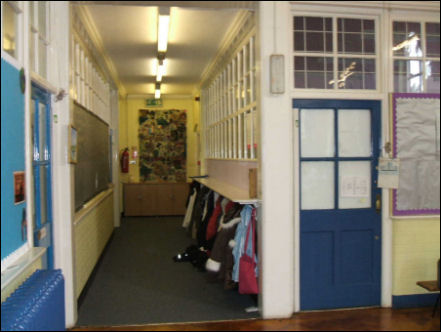 stopped to take pictures of the new extension for you. To my surprise, a teacher saw me and asked if I would like a look round the old part of the school. This shows the entrance into the hall from the Vaughan St entrance. The classroom on the right is now a computer room. I well remember the old radiators, a bit of Victorian engineering I guess and still no doubt working to perfection! |