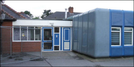 All the old toilets in the playground have been demolished and facilities are now inside near the South entrance. The blue building is a permanent 'prefab' classroom. |