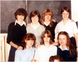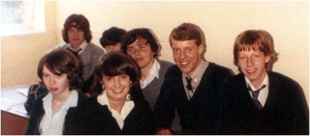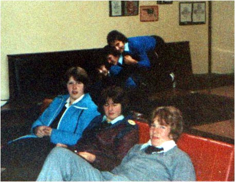 | Taken in May 1979, in front of the art room. from the left is ... Dave Wallace, Katrina Rollinson, Pete Burrows, Debbie Rogers |