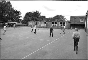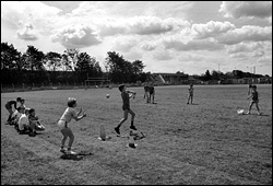 ![]() Mr. Thompson showing the finer points of playing Rounders. |