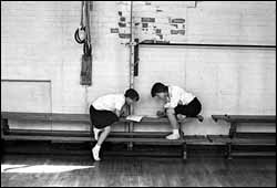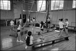 ![]() Ropes, beam and bench Good workout for these three girls. |