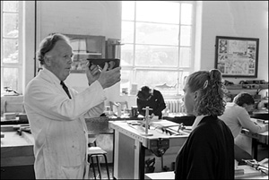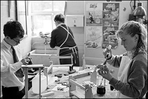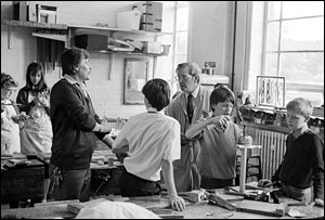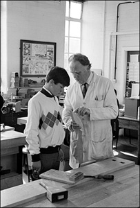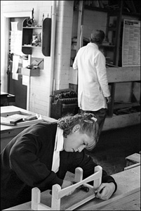 ![]() Mr. Wetton checks the plane blade for adjustment. form 3N, grade level. |